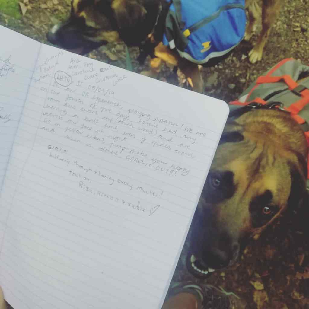However, despite my extensive prep work, I still had not mastered map reading and again Jeremy was stuck searching ATV and fire roads to find us. Though he was not overly pleased it was still exciting to have officially reached the halfway point! Writing in the trail book gave me a huge sense of triumph. Making it 35 miles felt like no small feat for a first solo hiking trip with the dogs. I had come this far and knew I would make it the rest.